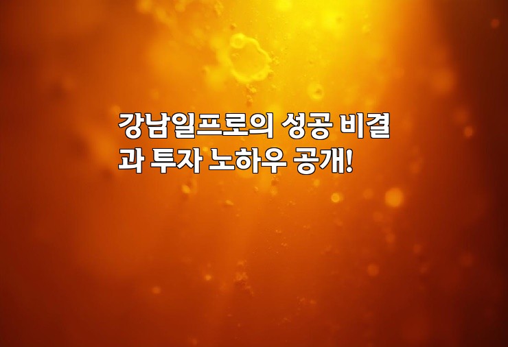 강남일프로의 성공 비결과 투자 노하우 공개! 더 읽기"